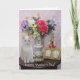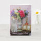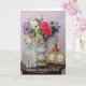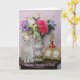 Cartão personalizável com Missy por flores em um vaso bonito, uma figurina, uma imagem dourada e uma caixa de música. Você pode personalizar o texto, alterar as fontes, os tamanhos de fonte e as cores. Você pode adicionar um dentro de cor de fundo.