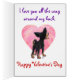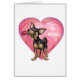 Parada Animal Romântico Chihuahua Dog Be Mine Cartão apresenta nosso trabalho de arte divertido de um Chihuahua negro e bronzeado segurando um rosa bonito na boca com corações roxos, vermelhos e rosa em camadas atrás pintados digitalmente pelo artista infantil, Traci Van Wagoner. Este doce cão apaixonado por design é um presente perfeito para o Dia de os namorados, o seu aniversário, para propor casamento de uma forma divertida e original, ou apenas para dizer, eu te amo. Puta!