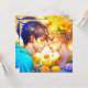 Menina de anime personalizada e garoto beijando cartão de Dia de os namorados romântico.