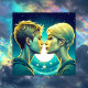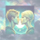 Menina de anime personalizada e moça romântica de menino em frente às estrelas. Placa de dia de os namorados.