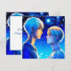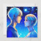 Menina loira de anime personalizada e o momento romântico do menino se beijando na frente das estrelas. Placa de dia de os namorados.