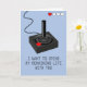 Uma placa de dia de os namorados engraçada para jogadores, com um fundo azul que pode ser mudado para qualquer cor, um joystick retro computador, 4 vidas com 1 restante, e o ditado bonitinho "Quero passar minha vida restante com você".