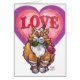Animal Parade Romântico Cat Heart and Love presentes, cartas, e acessórios trazidos para você pela ITD Animal Parade apresentam nossa divertida trabalho de arte de um gato laranja e branco segurando um rosa bonito na boca com corações roxos, vermelhos e cor-de-rosa atrás pintados digitalmente pelo artista infantil, Traci Van Wagoner. Este doce gato apaixonado design é um presente perfeito para Dia de os namorados, seu aniversário, por propor casamento de uma forma divertida e original, ou apenas para dizer, eu te amo. Miau!