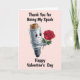 Acenda seu coração com este cartão de dia de Namorados divertido e punny. Com um encantador caracter de plugue-faísca segurando uma rosa vermelha de solteiro, esta placa é perfeita para aquele especial que mantém seu motor funcionando. Quer eles gostem de carros, ferramentas, ou simplesmente adorem uma reviravolta inteligente, esta design única proporciona amor com uma faísca.