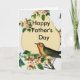 Um pássaro da placa de saudação de Dia de os pais em um galho florescente.