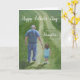 Placa de dia de os pais com pintura a óleo de um pai e sua filha caminhando de mãos dadas.