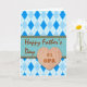 Feliz Dia de os pais para Opa nº 1, cartão de saudação em papel. Design de árgyle em padrão de diamante em tons de azul e branco. Um coração de madeira falsa com texto adiciona um elemento masculino ao cartão. Design moderno e contemporâneo com linhas e cores masculinas ousadas. Cartão de dia de os pais para um avô/avô. Cortesia do KArnold/publicdomainpicture. Imagem e direitos de autor © Shoaff Ballanger Studios.