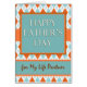 Feliz Dia de os pais para um cartão de saudação de papel do parceiro de vida. Padrão de argyle em cor laranja, azul e branca por cortesia do KArnold/publicdomainpicture. Design digital moderno. Imagem e verso © Shoaff Ballanger Studios.