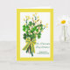 Rua, o dia de Patrick deseja! Querido Filho e Filha de Direito. Cartão de saudação em papel com um design de arranjo floral de pavimentões, shamrocks e galhos com rebentos/flores amarelas. Também estão incluídos alguns caules de salgueiros ou catkins. O dentro pode ser personalizado com uma fotografia pessoal carregada ou texto/mensagens adicionais. Arte, imagem e direitos de autor versos © Shoaff Ballanger Studios, 2021.