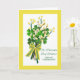 Rua, cartão de saudação do dia de Patrick para padrinhos. O cartão tem um aspecto primavera e um sentimento com tons de shamrocks verdes e minúsculos florins amarelos. Falso fita de bolinhas em verde com listras amarelas. Fluffy Catkins também está no buquê. Arte, imagem e verso © Shoaff Ballanger Studios, 2021.