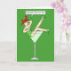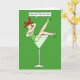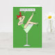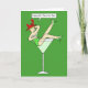 Uma senhora de desenho animado reclinando-se em um enorme copo de coquetel, dizendo 'Ruas felizes. Dia de Patrick'. A imagem tem um fundo de cor verde vibrante.