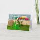 Uma foto de um cachorro vestido no jardim da Rua Pat. Minha mãe diz que sou irlandês...." A mensagem dentro diz: "Mas ela também diz que sou judeu em Chanucá e veterano no Dia Memorial...." Feliz Dia de São Patrício!
