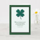 Um cartão simples e bonito com um trevo verde colocado em um fundo branco com uma borda preta e verde. Este cartão inclui uma bênção irlandesa na frente e é adequado para qualquer amigo ou familiar. Personalize o nome do destinatário e o seu nome.
