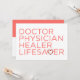 Agradeça a um médico com este design único que apresenta a mensagem em letras maiúsculas e negrito, "MÉDICO DOUTOR SANADOR SALVADOR DE VIDAS". O "V" na palavra SALVADOR DE VIDAS é substituído por uma ilustração de bóia em forma de coração. Por dentro, tem esta mensagem, mas pode ser personalizada: "