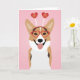 Ilustração fofa de um Corgi com óculos de sol em forma de coração e faixa na cabeça. Perfeito para o Dia dos Namorados!
