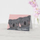 Um cartão do dia dos namorados de um casal de coalas ilustrados com um fundo rosa.