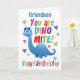 Um cartão especial de Feliz Dia dos Namorados para o seu neto. Este cartão de cumprimentos brilhante e divertido apresenta um dinossauro azul, alguns corações bonitos e texto colorido dizendo 'Você é dino-mite'. Um design fofo para crianças.