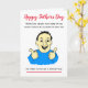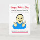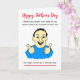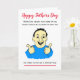 Cartoon engraçado de um homem sorrindo para o Dia dos Pais. O texto atualmente diz 'Quando o pai ouviu que nenhum de seus familiares tinha permissão para visitá-lo... ele tentou fazer uma cara corajosa', mas você pode personalizar facilmente este cartão editando o texto do modelo. Obrigado por visualizar meus designs!