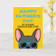 Franceses, que melhor maneira de mostrar ao seu Pai o quanto você o ama neste Dia dos Pais com um cartão personalizado feito apenas por você! O design apresenta uma ilustração em estilo cartoon de um buldogue francês azul usando óculos de sol azuis com a frase "Feliz Dia dos Pais para o melhor pai Frenchie de todos!" escrita na frente. O interior do cartão diz "Para o Papai, eu te amo mais do que guloseimas", mas pode ser alterado para a frase de sua escolha.