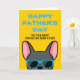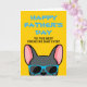 Franceses, que melhor maneira de mostrar ao seu Pai o quanto você o ama neste Dia dos Pais com um cartão personalizado feito apenas por você! O design apresenta uma ilustração em estilo de desenho animado de um buldogue francês azul usando óculos de sol azuis com a frase "Feliz Dia dos Pais ao melhor pai Frenchie de todos!" escrita na frente. O interior do cartão diz "Para o Papai, eu te amo mais do que guloseimas", mas pode ser alterado para a frase de sua escolha.
