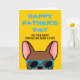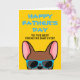Franceses, que melhor maneira de mostrar ao Papai o quanto você o ama neste Dia dos Pais com um cartão personalizado feito especialmente por você! O design apresenta uma ilustração em estilo de desenho animado de um bulldog francês cor de cervo vermelho usando óculos de sol azuis com a frase "Feliz Dia dos Pais para o melhor Papai Frenchie de todos!" escrita na frente. O interior do cartão diz "Para o Papai, eu amo você mais do que petiscos", mas pode ser alterado para a frase de sua escolha.