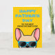 Franceses, que melhor maneira de mostrar ao seu Pai o quanto você o ama neste Dia dos Pais com um cartão personalizado feito especialmente por si! O design apresenta uma ilustração estilo cartoon de um bulldog francês cor de cervo claro vestindo óculos de sol azuis com a frase "Feliz Dia dos Pais ao melhor Pai Frenchie de sempre!" escrita na frente. O interior do cartão diz "Para o Pai, eu amo você mais do que guloseimas", mas pode ser alterado para a frase que você escolher.