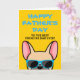 Franceses, que melhor maneira de mostrar ao seu Pai o quanto você o ama neste Dia dos Pais com um cartão personalizado feito apenas por você! O design apresenta uma ilustração em estilo de desenho animado de um bulldog francês de cor castanha-claro vestindo óculos de sol azuis com a frase "Feliz Dia dos Pais ao melhor pai Frenchie de todos!" escrita na frente. O interior do cartão diz "Para o Papai, eu te amo mais do que guloseimas", mas pode ser alterado para a frase de sua escolha.