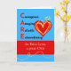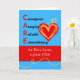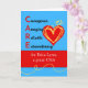 Feliz cartão de saudação do jornal nacional CNA para um assistente de enfermagem certificado. CUIDADO, corajoso, incrível, confiável, extraordinário. Corações esquisitos com linhas estão no cobrir. Esquema de cores azul, vermelho e amarelo. Adicione o nome da CNA ao cobrir. Arte, imagem e verso © Shoaff Ballanger Studios, 2024.