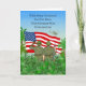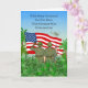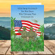 Este cartão de saudação patriótico presta uma homenagem aos homens e mulheres que serviram durante a Guerra do Vietnã. A obra de arte mostra dois soldados do Exército dos EUA juntos, olhando para a bandeira americana enquanto um helicóptero da era do Vietnã cruza um céu azul claro, cercado por palmeiras e gramíneas altas.