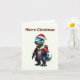 Cartão Dinossauro de Natal Azul