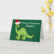 Cartão Dinossauro de Natal bonito em Santa Hat Verde