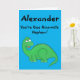 Personalize este cartão com o nome do seu sobrinho! Este cartão de aniversário engraçado de dinossauro é perfeito para o seu sobrinho! O dentro é vazio para que você possa escrever sua própria mensagem sincera!