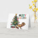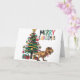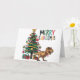Cartão Dinossauro T-rex engraçado bonito e árvore de Nata