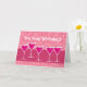 Uma fileira de coquetéis cosmopolitas de framboesa rosa branca, em óculos martini inclinados, flutuam numa borda de listras arrojadas. Rochas divertidas em cor-de-rosa criam o resto do fundo festivo. É o seu aniversário. Dentro repete um dos óculos com o Tempo de Comemorar. Mantenha como está, ou mude qualquer texto para Time to Party ou seja qual for a sua preferência. Um design moderno divertido com um toque de estilo retrô.