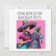 Convite de Festa com uma divertida piñata de arte pop na frente e os detalhes do evento no verso.