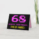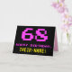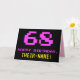 A frente deste design de cartão de saudação divertido, geek e com temas nerds de aniversário apresenta um grande número "68" e a mensagem "FELIZ ANIVERSÁRIO", cor-de-rosa, juntamente com um nome de destinatário com edição amarelo e ousado. O texto tem um aspecto inspirado no dos gráficos antigos de jogos para computador/vídeo, ao estilo de 8 bits, das décadas de 1970 e 1980, e o plano de fundo é preto. O dentro apresenta uma mensagem de saudação de aniversário personalizada, ou talvez possa ser limpo e vazio à esquerda se uma mensagem for escrita à mão. Um bobo de aniversário personalizável como este pode ser uma maneira divertida de reconhecer o aniversário de sessenta e oito anos de alguém. [~Z0000478]