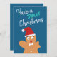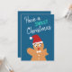Tenham um doce cartão de cartões de natal de Natal, com um gengibre picante, com um chapéu vermelho e uma gravata branca de arco.