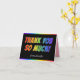 Este obrigado otimista que você saúda o cartão design apresenta a mensagem "MUITO OBRIGADO!", com as letras que têm um padrão de gradação inspirado no espectro do arco-íris. O dentro apresenta uma mensagem de obrigado personalizada. Um cartão como este pode ser usado para obrigado de alguém que fez algo especial, ou que talvez tenha frequentado um evento como um casamento, uma festa de aniversário ou uma festa de aniversário.