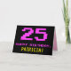 A frente deste design de cartão de saudação divertido, nerd e geeky aniversariante apresenta um grande número "25" e a mensagem "HAPPY BIRTHDAY", cor-de-rosa, juntamente com um nome de destinatário personalizado amarelo ousado. O texto tem uma aparência inspirada pelo estilo clássico de gráficos de jogos de computador/vídeo de 8 bits dos anos 70 e 80, e o fundo é preto colorido. O dentro apresenta uma mensagem de saudação de aniversário personalizável, ou talvez possa ser apagado e deixado o vazio se uma mensagem for escrita manualmente. Um cartão de aniversário personalizado de bobo como este pode ser uma maneira divertida de reconhecer o vigésimo quinto aniversário de alguém. [~Z0000478]