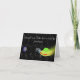 uma carta para uma criança interessada no espaço ou em dinossauros uma charge engraçada de um OVNI atingindo um asteroide próximo à Terra, na espaçonave uma alienígena diz "filho cuidadoso é assim que perdemos os dinossauros". uma boa carta divertida para o dia da ciência.