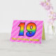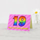 Este design de carta de saudação de 19 anos, festivo e feliz, tem uma frente com um grande número de "19", tendo um padrão colorido inspirado pelo aparecimento de um espectro arco-íris, em uma rosa claro alegre e formas cardíacas cor-de-rosa escuro como fundo listrado. A frente também apresenta a mensagem "Feliz 19 de aniversário", seguida de um nome de destinatário personalizado. O dentro apresenta uma mensagem de saudação de aniversário personalizada, ou talvez possa ser limpo e vazio à esquerda se uma mensagem for escrita à mão. Um cartão de aniversário personalizável como este pode ser uma forma divertida e feliz de reconhecer o 19º aniversário de alguém. [~Z0000418]