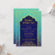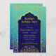 Cartão do convite de aniversário do tema de Bollywood ou das noites árabes nos azuis marinhos, na cerceta, e no ombre do aqua com acentos da folha de ouro.