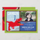 Cartão pré-histórico do convite do aniversário do rex vermelho bonito e assustador do tiranossauro primeiro.
