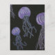 Cartão das medusa no oceano escuro. A imagem original é esboçada e protegido usando lápis coloridos contra um fundo preto que faz as cores estale.