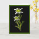 Os trabalhos de arte gráficos bonito da flor alpina chamaram Edelweiss. Ajuste contra um fundo do negro como o azeviche, com uma borda verde em torno do cartão, você pode quase sentir o softness distorcido das pétalas das flores. O interior do texto é inteiramente customizável serir suas necessidades. Excelente para notas de cada dia aos cartões da ocasião especial.