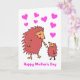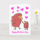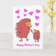 Cartoon fofo de uma mãe e um bebê ouriço se aproximando no Dia das Mães. A mensagem diz 'Feliz Dia das Mães'. O cartão tem um fundo branco com corações, mas é fácil editar para uma cor diferente. Personalize facilmente este cartão editando o texto do modelo na frente e dentro. Obrigado por ver meus designs!