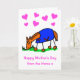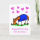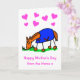Desenho animado fofo de um cavalo vestindo uma manta azul para o Dia das Mães. A mensagem diz 'Feliz Dia das Mães do Cavalo x'. O cartão tem um fundo branco com corações, mas é fácil editar para uma cor diferente. Personalize facilmente este cartão editando o texto do modelo na frente e dentro. Obrigado por visualizar meus designs - perfeito para toda mãe amante de cavalos!