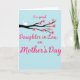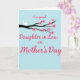 Este cartão apresenta um fundo azul claro e calmo que parece um céu de primavera aberto, estabelecendo um tom suave e amigável ❤️. Na área superior esquerda, um simples ramo se estende para dentro com flores cor-de-rosa suaves, cada flor marcada por um centro róseo mais profundo que adiciona um toque terno. Um pequeno pássaro branco está sentado no ramo com um bico vermelho minúsculo e um olho escuro, inclinado para a direita como se estivesse admirando silenciosamente as flores como um olhar doce e afetuoso. O texto principal está abaixo da ilustração no meio do cartão, disposto em uma pilha organizada e fácil de seguir. Lê-se “Para uma Nora especial no Dia das Mães” em letras fúcsia ricas que se destacam claramente contra o azul. O espaçamento generoso ao redor das palavras e da obra de arte dá a tudo espaço para respirar, mantendo a aparência simples e calorosa 🌼. As flores se agrupam perto da ponta do ramo enquanto o pássaro permanece ligeiramente mais perto da esquerda, criando um detalhe de canto equilibrado acima da mensagem centralizada. O layout geral deixa muito espaço azul aberto, com o ramo e as flores cor-de-rosa enqu