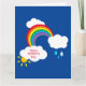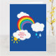 Um padrão maravilhoso e brilhantemente colorido com tema meteorológico, incluindo um arco-íris, nuvens brancas fofas, uma garoa de chuva e sol.