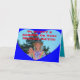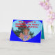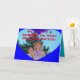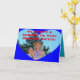 Um Casal de fecho que é brilhante e colorido com o céu azul, e uma árvore, que está num Cartão de Dia de Casamento.